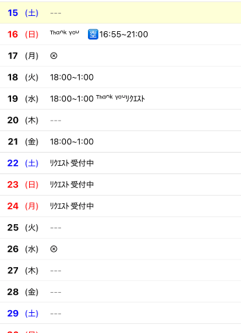 (◎ ̄  ̄◎)ノぼなせーら 午前中ねぇ お腹痛かったの… 空腹すぎだったから〜 ♡♡(*´♡`*)アハハハハ 胃酸過多 ワロえない ( ̄-  ̄ ) ンー ![]() 明日スタート ご新規様ぁ ご予約ありがと♪ 楽しみにしてるねぇ 21時まで受付 ご予約頂けたら嬉しい ♡ |