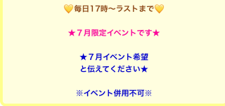 おふくろさん¨♡♡ 7月イベント♡ トリプルラッキー セブンイベント♡*。 7月限定イベント♪ +7分です¨♡♡ 毎日 17時〜ラストまで♡*。 交通費1000円〜♪ ![]() イベント併用不可♪ ![]() ご予約の際には 7月イベント希望と 必ずスタッフさんに お伝え下さいね¨♡♡ 宜しくお願いします♡*。 ♡田代♡ |