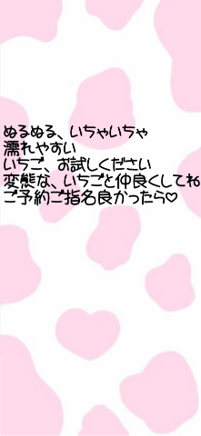 いちごです、ご予約、お休み明けドキドキワクワクお愛できるの心待ちにしております今日は空き枠が♡16時から24時退勤アップまでです♡♡まだまだ夕方からエリア移動できますオキニトークも時間ある時に送るので良かったら♡♡♡♡いちごで、お休みの方もお仕事の方も息抜き楽しんでください。