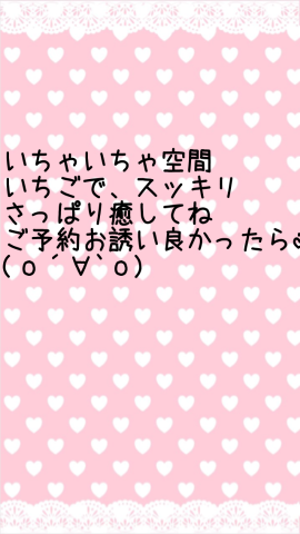 いちごです、ご予約ご指名ご新規さま本指名さまどうもありがとお礼日記さんは明日、書かせていただきます♡♡♡いちご連休前のエロい空間お仕事帰りの方息抜き癒してね21時20分♡今から25時退勤アップまで♡です後少し、良かったらいちごのお愛てお願い致します。