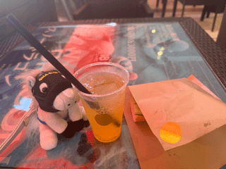 さやは、ステイゴールドって飲み物とパン食べました🥖