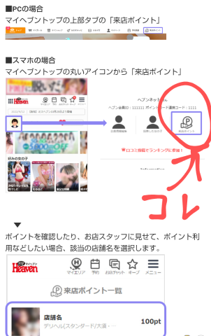 どうやら、●●●の 『来店ポイント』というものを使うと お得に遊べるみたいです 仲良し様からお問い合わせ頂き、 お店に聞いたところ 『受付の時に言っていただければ 1回の利用で1000ポイント使えます』 と、教えていただきました マイ●●●のページのこちらから ![]() ネット上でポイントカードを作るのか? 詳しくは分かりませんが ポイントがあれば使えるので 確認してみてね♡ 調べたところによると こちらのポイントは 【ネット予約】をした時のみ 溜まるものみたい(たぶん)なので 姫予約の場合は ポイントが貯まらないっぽいです(たぶん) 希望の時間じゃなくてもいいから ポイント貯めたいよ〜って方は ネット予約のほうがいいかもしれません 「希望の時間に確実に遊びたい!」 という方は 姫予約がおすすめです (ネット予約開始前からご予約できるため) ♡ |