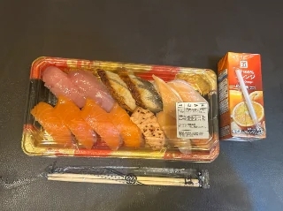 今回は私が大好きなお寿司買って来てくれて嬉しかったよ!