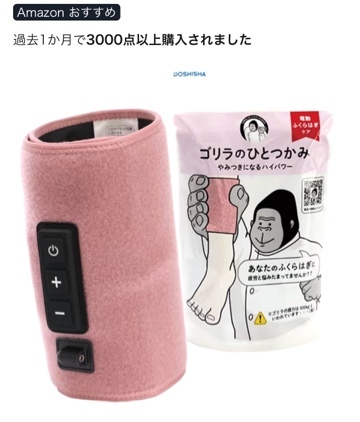 こんばんは ![]() ![]() 今日も寒かったですね ![]() これ知ってますか? ![]() ゴリラのひとつかみ ふくらはぎのマッサージ機 前に話題になっていて いいな~と思いながら忘れていて 最近また話題になってるみたいで ![]() ふくらはぎは第2の心臓 マッサージするのはいいよね! しかも気持ちいいらしい( '') 数日前に届いた ![]() 肩、背中、腰などの マッサージ機 買っちゃったからな~ ![]() 我が家に来たマッサージ機の 説明書をみたら ふくらはぎも出来るって書いてある けど、ぎゅーって 握られてる感の方が 気持ち良さそうだよね! んー、保留です( - -)" 使ってる人がいたら 教えて下さいね~(**) 夜はより冷えるから 暖かくして休んで下さいね (* *)おやすみなさい..:* いつも ありがとうございます |