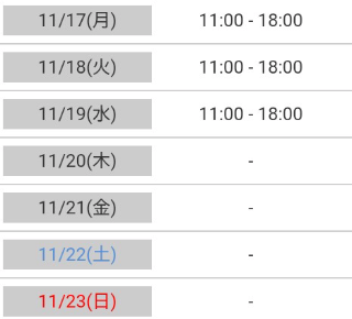 1週間の出勤時間と11月の出勤カレンダーをお知らせします♡1週間予定♡11月カレンダー♡