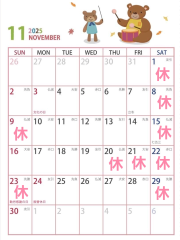 1週間の出勤時間と11月の出勤カレンダーをお知らせします♡1週間予定♡11月カレンダー♡