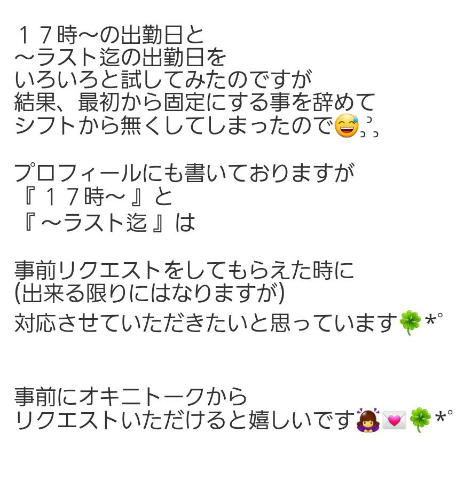 〜10月6日(月曜日)迄の 出勤シフトを載せてもらいました ( ♡♡ ♡♡♡ ♡♡)/ハイ!!♡*゜ チェックしてもらえたら♡♡ 嬉しいです(∩´∀`∩)♡ 10月14日〜 4〜5日間は 『鉄道の日♡♡』関連で お休みになるので (´・∀・`)テヘ ← (ちゃんと月休暇も兼ねてます♡♡) その前に会いに来ていただけたら 嬉しいな( *♡♡*)♡ ↓↓↓ちょいちょいっと 日記に載せておりますが まだ浸透していないので再度 載せさせていただきます♡♡♡♀♡♡ ![]() まだまだ9月も 10月も どうぞよろしくお願いします♡♡♀♡♡♡*゜ ![]() |